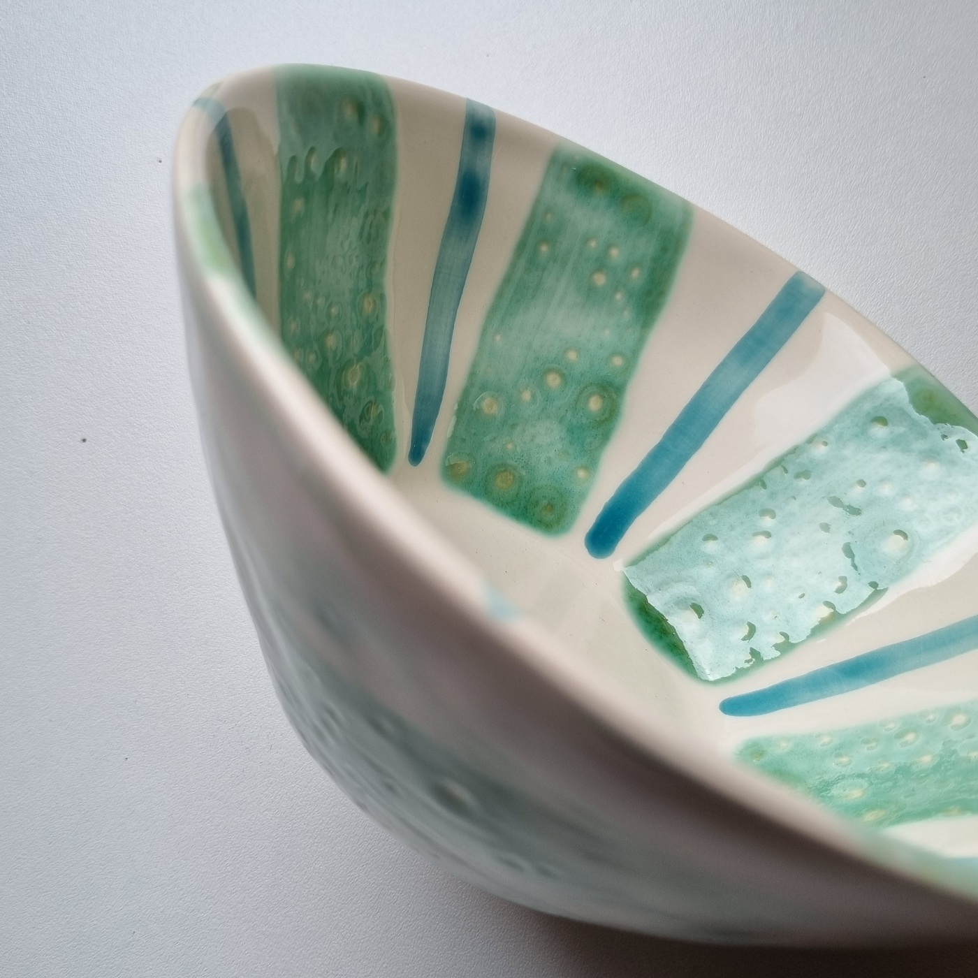 Deze mini-bowl komt uit de collectie van Duro Ceramics. Prachtige groen motief gecombineerd met turquoise accenten.